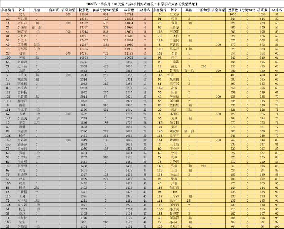 #孕媽媽請就位·科學(xué)孕產(chǎn)大賽前100名名單